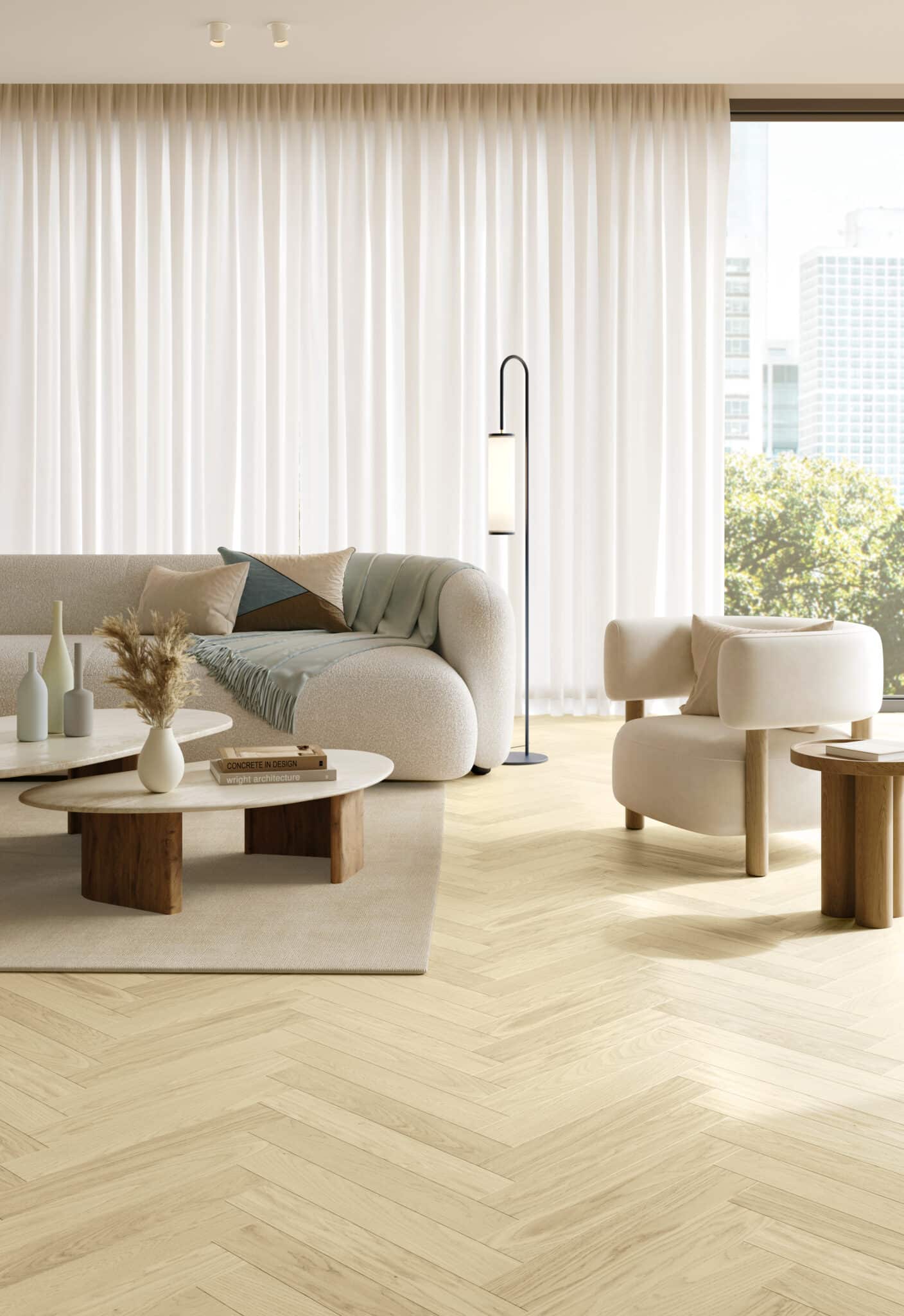 Created with great respect to the environment, and made with real wood from responsibly managed forests, these Strong Wood floors find their extraordinary strength through tried-and-true BerryAlloc innovations such as Ultimtec – a solvent-free, ultra-resistant and extra-matt varnish; and a locking system that’s extra-easy to install. The high impact resistance linked to the high density fiberboard core and the high abrasion resistance of the Ultimtec lacquer confers a very high strength to the floor. Let our strong wood floors bring you a step closer to nature and allow the subtle elegance of the wood to create a positive and uplifting mood to any interior. Parqwood Herringbone: 84mm x 504mm Clear Grade