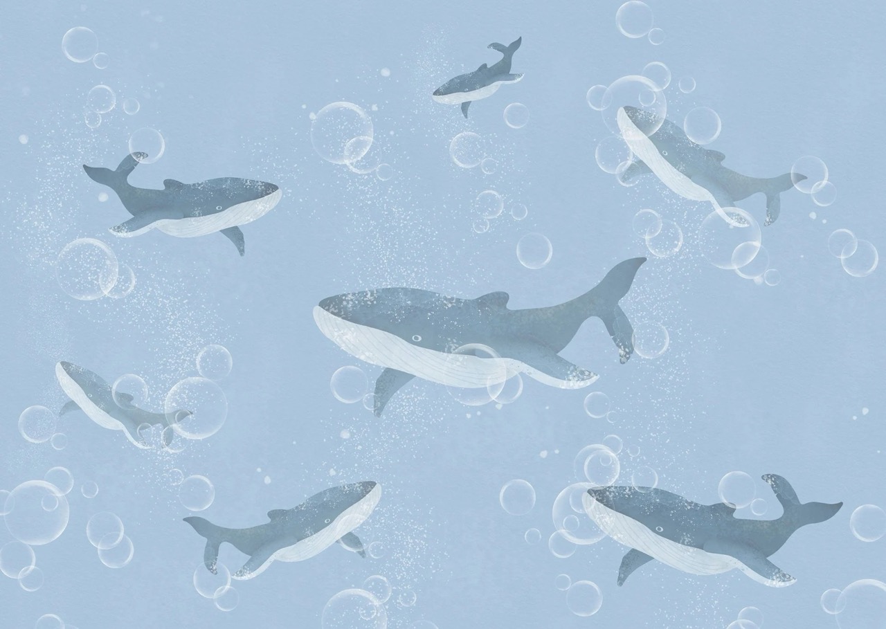 soft blue whales Add a touch of whimsy to your walls with the Whale Pod Mural, featuring friendly soft blue whales that are sure to make a splash in any room. Get ready to dive into a sea of style and fun!